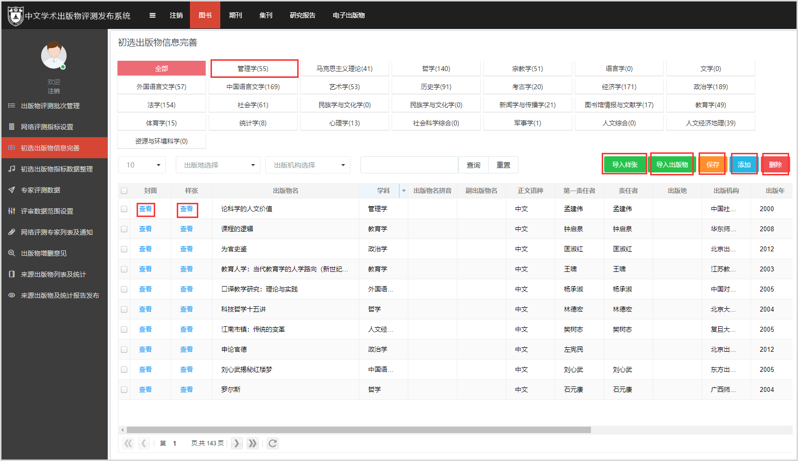 學(xué)術(shù)出版物評(píng)測(cè)與發(fā)布系統(tǒng)是一套線上采集出版物原始資源信息,網(wǎng)絡(luò)測(cè)評(píng)及發(fā)布展示系統(tǒng)。系統(tǒng)可分批次分學(xué)科發(fā)起組織出版物的在線評(píng)測(cè),設(shè)置出版物評(píng)測(cè)指標(biāo),實(shí)現(xiàn)專家網(wǎng)絡(luò)測(cè)評(píng)、專業(yè)委員會(huì)審定、評(píng)審結(jié)果發(fā)布等功能。