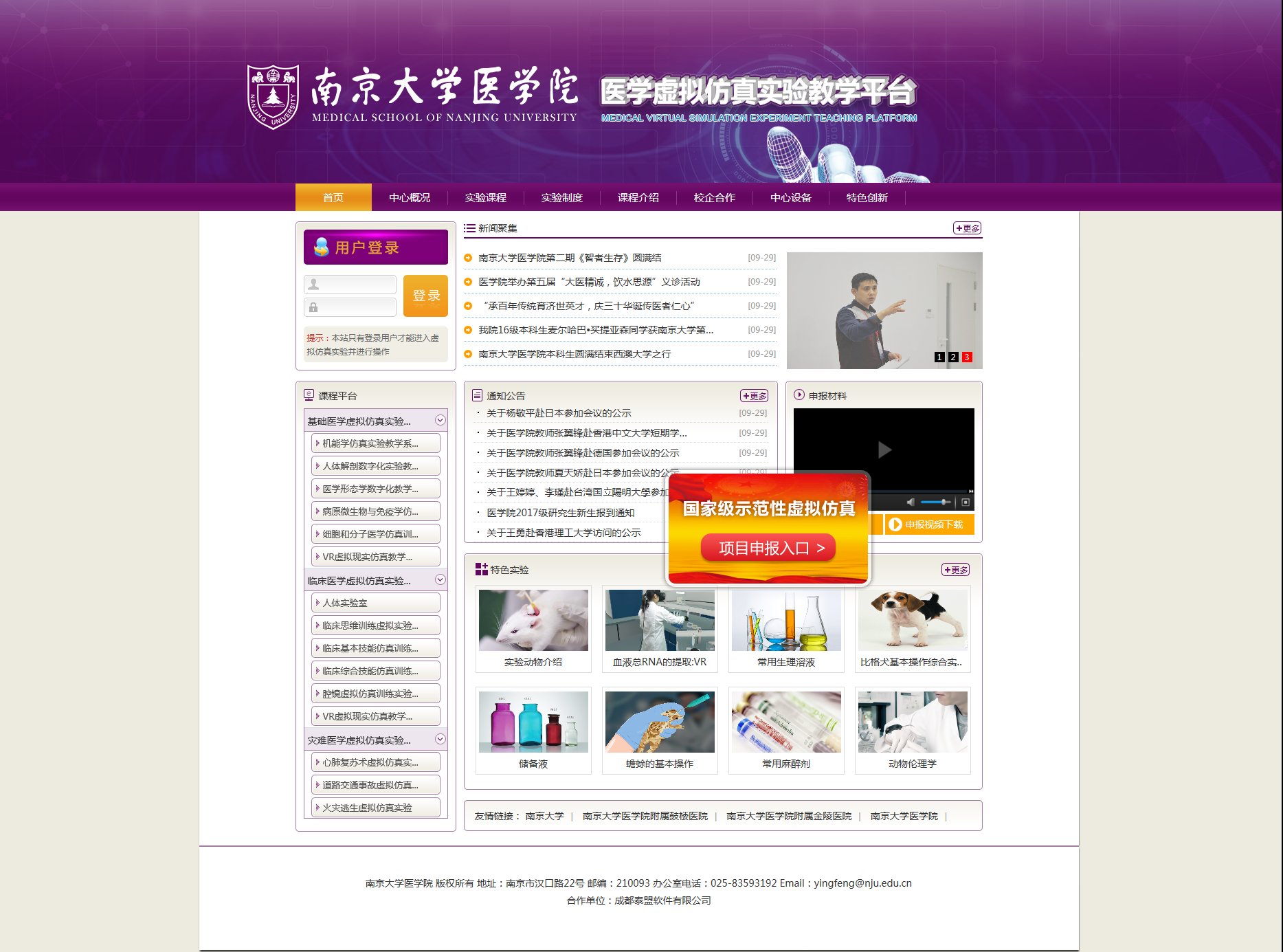 南京大學(xué)醫(yī)學(xué)院虛擬仿真教學(xué)中心網(wǎng)站