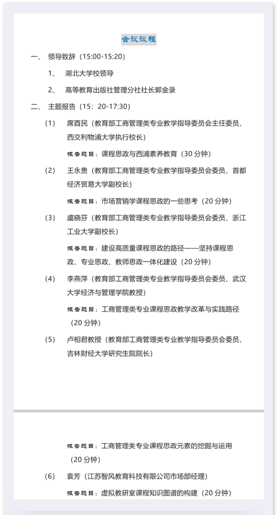 2022年7月29日下午,由湖北大學(xué)商學(xué)院牽頭建設(shè)的教育部工商管理課程思政虛擬教研室啟動會暨首屆教研論壇以“線上會議”的方式成功舉辦。西交利物浦大學(xué)席酉民執(zhí)行校長、首都經(jīng)濟貿(mào)易大學(xué)王永貴副校長、浙江工業(yè)大學(xué)虞曉芬副校長、武漢大學(xué)經(jīng)濟與管理學(xué)院李燕萍教授、吉林財經(jīng)大學(xué)研究生院盧相君院長等專家與骨干教師在線參加會議,會議由湖北大學(xué)商學(xué)院郭志文副院長主持。
